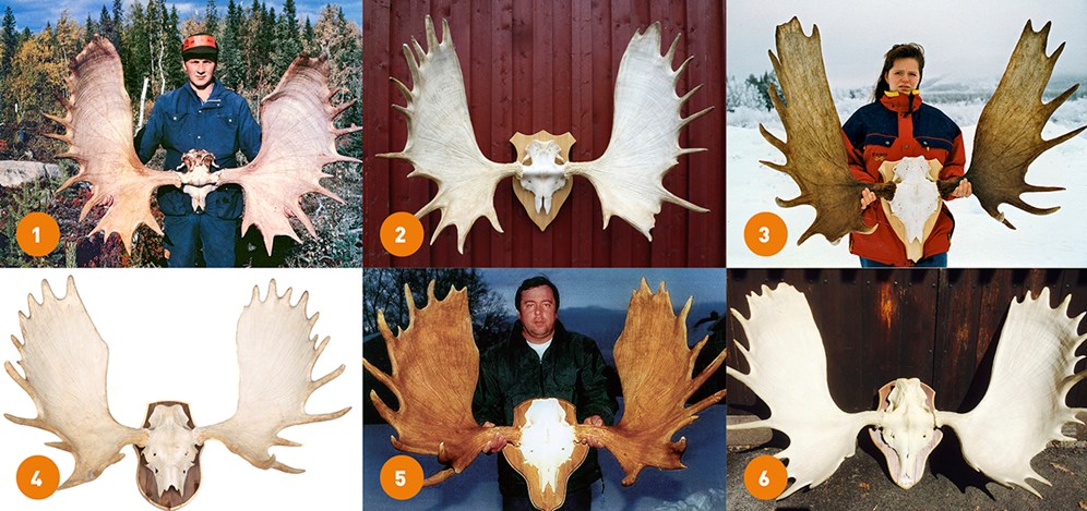 De sex största älgtroféerna i Sverige. Arkivfoto: Svensk Jakt