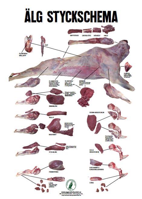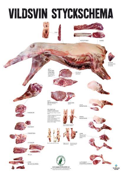 Du kan ladda ner våra styckningsschema för älg och vildsvin.